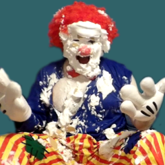 Bipieboy was surprised by ClownedUp with a big sloppy cream pie to the face